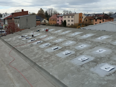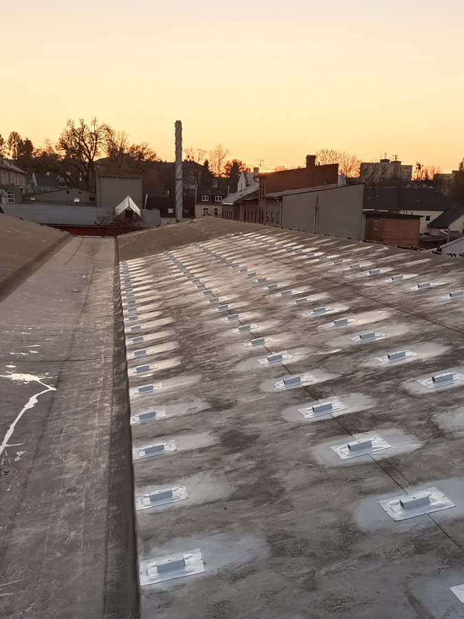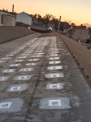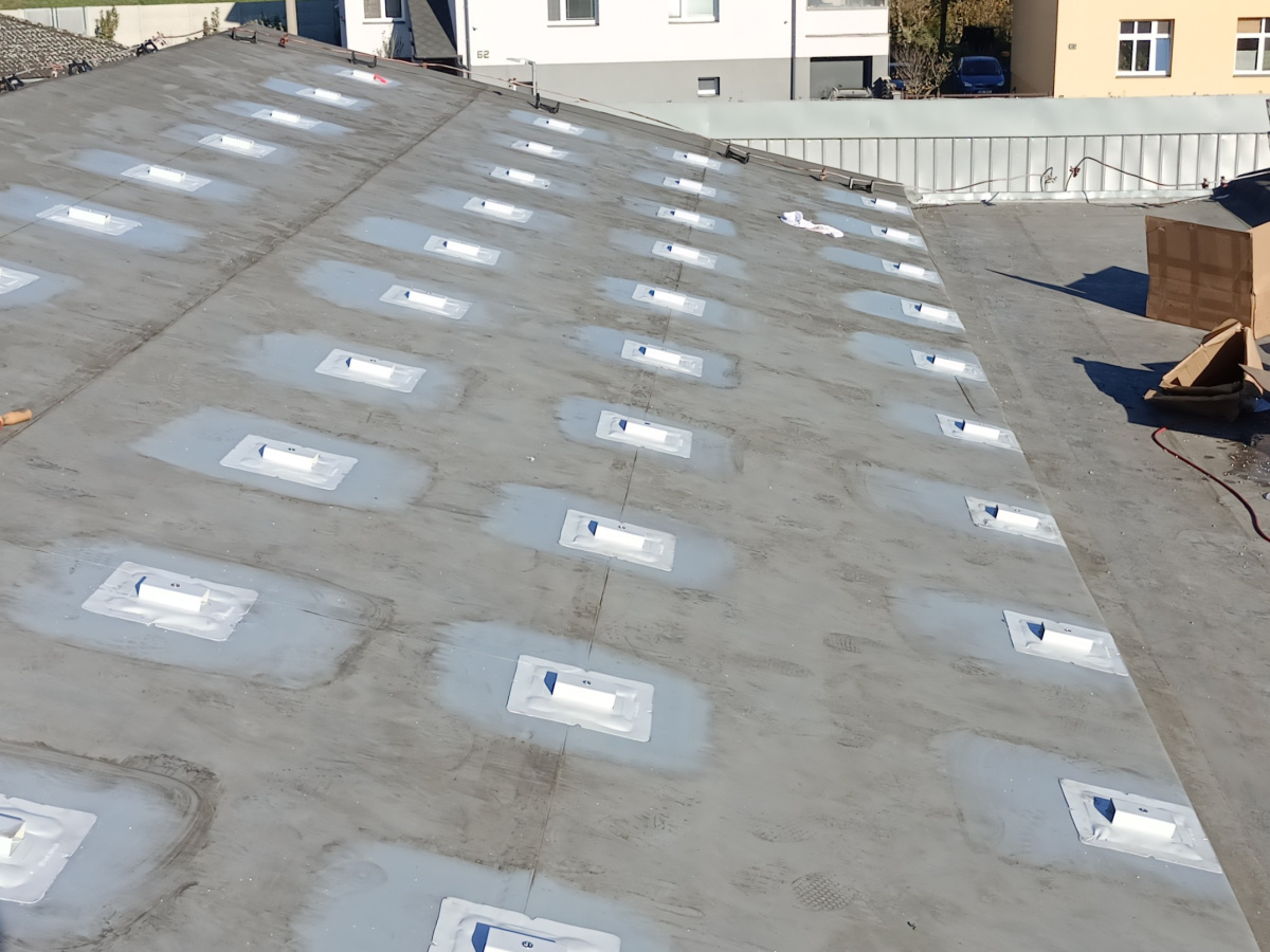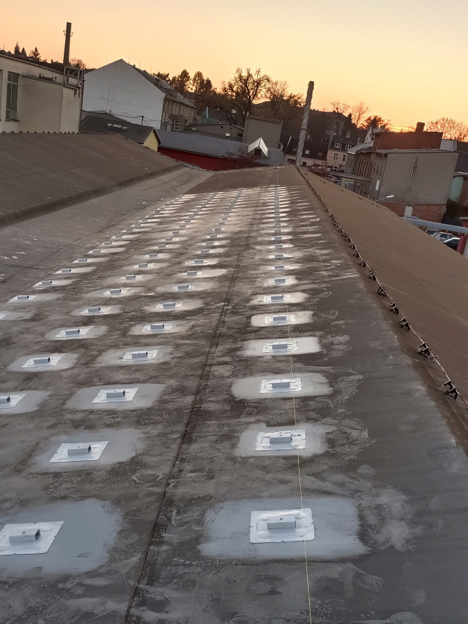 The project was carried out on a pitched roof with PVC roofing membrane and EPS thermal insulation on a wooden substrate. Due to the roof slope, it was not possible to use a traditional ballasted mounting system. The most suitable solution was the anchoring system SOLATECH DIM PVC, which is compatible with various types of substrates. For this installation, the DIM PVC XL version was used, enabling safe mechanical anchoring without additional ballast.