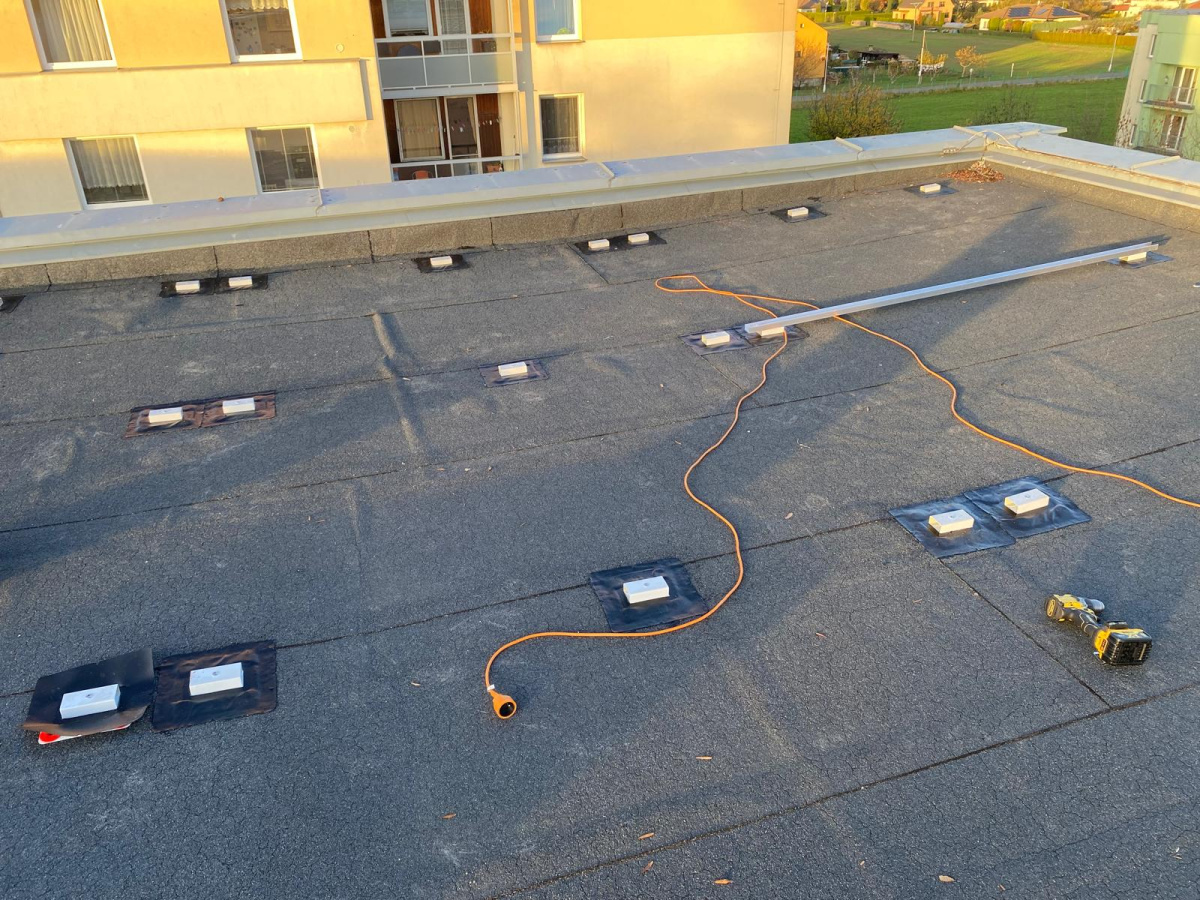 Pro tuto zakázku byl zajištěn maximální technický servis SOLATECH, včetně návrhu kotvení pomocí prvků SOLATECH DIM. Prvním krokem byla tahová zkouška pro přesné určení vhodného spojovacího materiálu a stanovení výtažných hodnot pro bezpečné kotvení do podkladu.