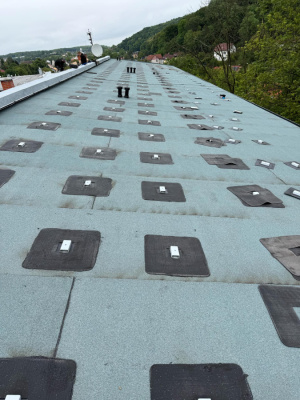 Na této zakázce byl využit kotevní systém SOLATECH DIM BIT doplněný o asfaltové překrytí, které zajišťuje spolehlivé a vodotěsné napojení kotevního prvku na asfaltovou krytinu.