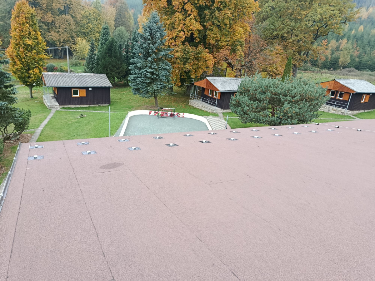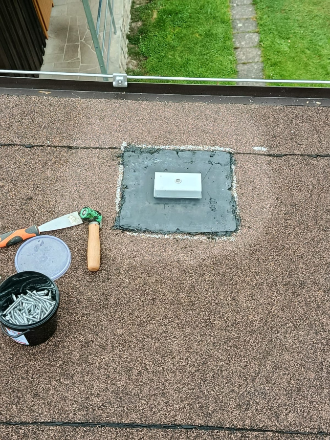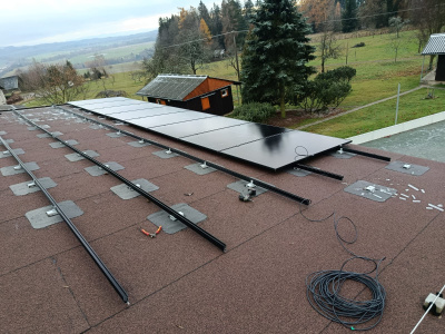 Kotevní prvky byly instalovány do dřevěného podkladu, což poskytlo pevný a stabilní základ pro následnou montáž fotovoltaické konstrukce. Toto řešení je ideální tam, kde je nutné spojit mechanické kotvení s plnou ochranou proti průniku vlhkosti.